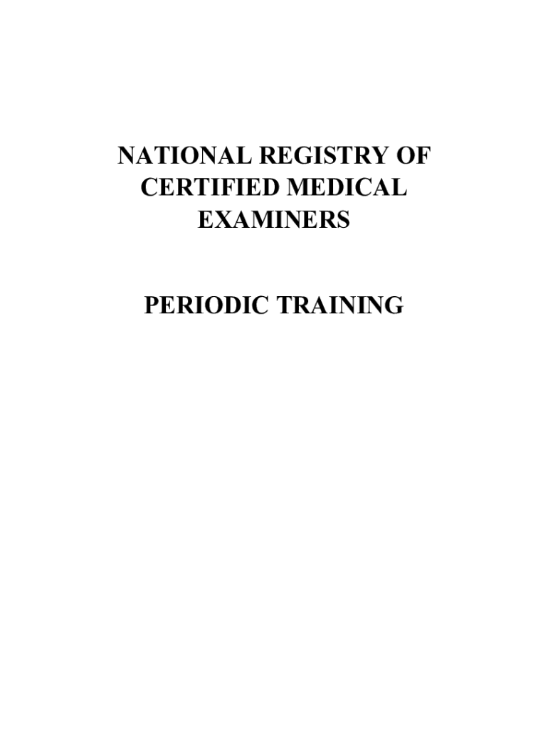 NATIONAL REGISTRY OF CERTIFIED MEDICAL EXAMINERS PERIODIC TRAININGResource Version Disclaimer This version of the National Registry 5year periodic training is being provided as a resource for training