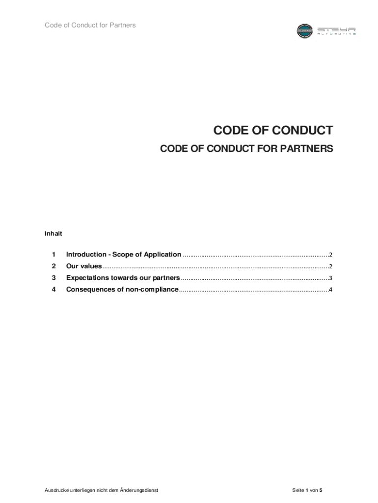 Code of Conduct for PartnersCODE OF CONDUCT CODE OF CONDUCT FOR PARTNERSInhalt1Introduction Scope of Application ................................................................................22Our
