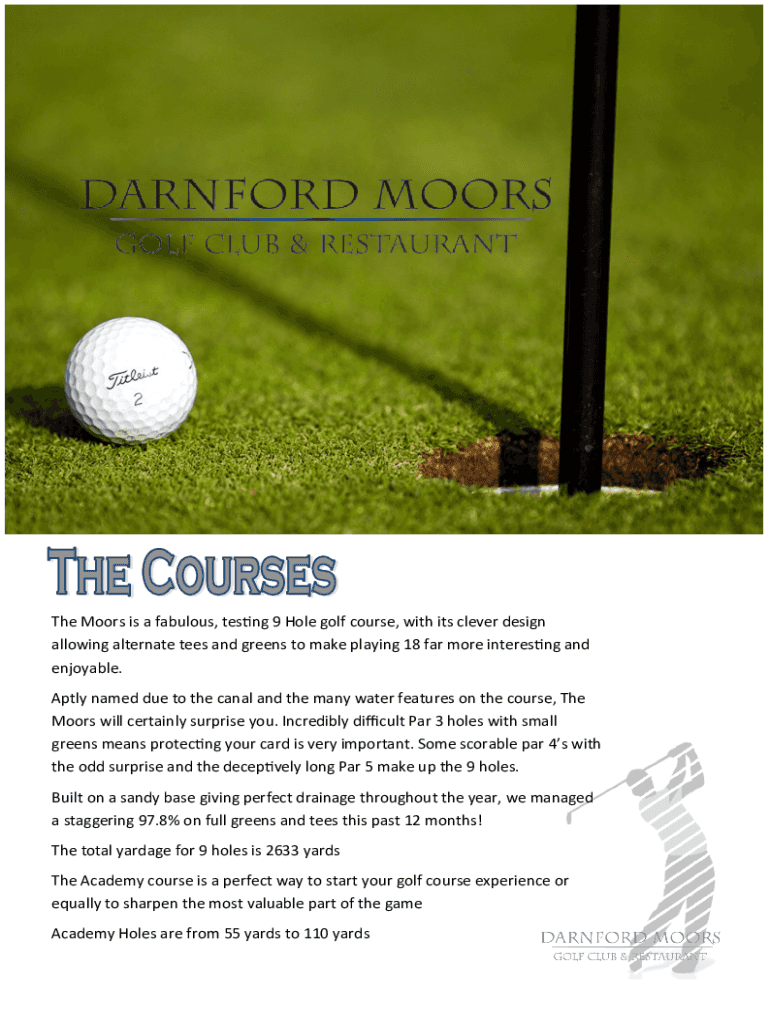 The Moors are a fabulous, testing 9 Hole golf course, with its clever design allowing alternate tees and greens to make playing 18 far more interesting and enjoyable. Aptly named due to the canal