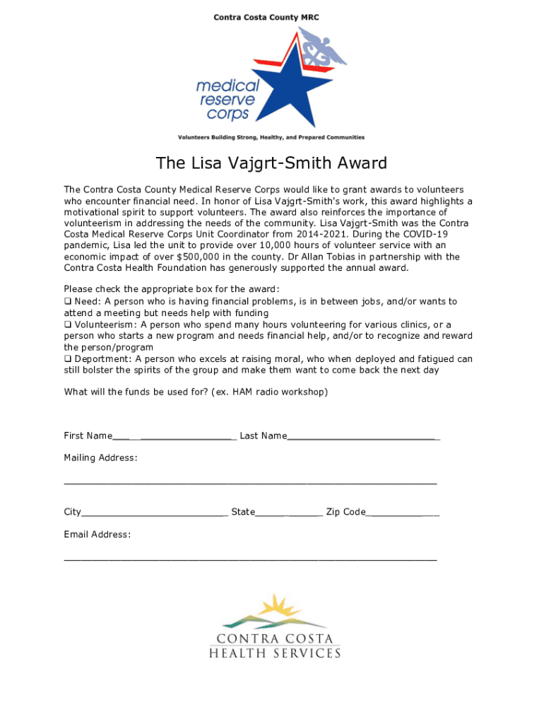 The Contra Costa County Medical Reserve Corps would like to grant awards to volunteers