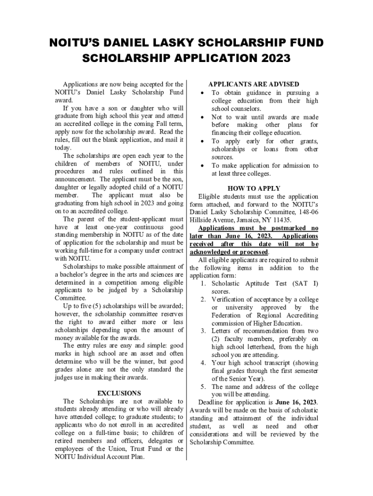 Get the free NOITU Daniel Lasky Scholarship Application
