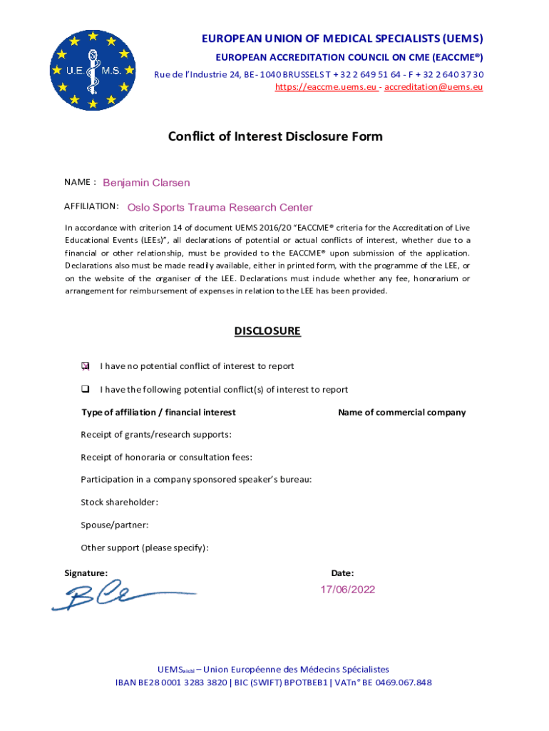 EUROPEAN UNION OF MEDICAL SPECIALISTS (GEMS) EUROPEAN ACCREDITATION COUNCIL ON CME (EAC CME) Rue de industries 24, BE 1040 BRUSSELS T + 32 2 649 51 64 F + 32 2 640 37 30 https://eaccme.uems.eu accreditation@uems.euConflict