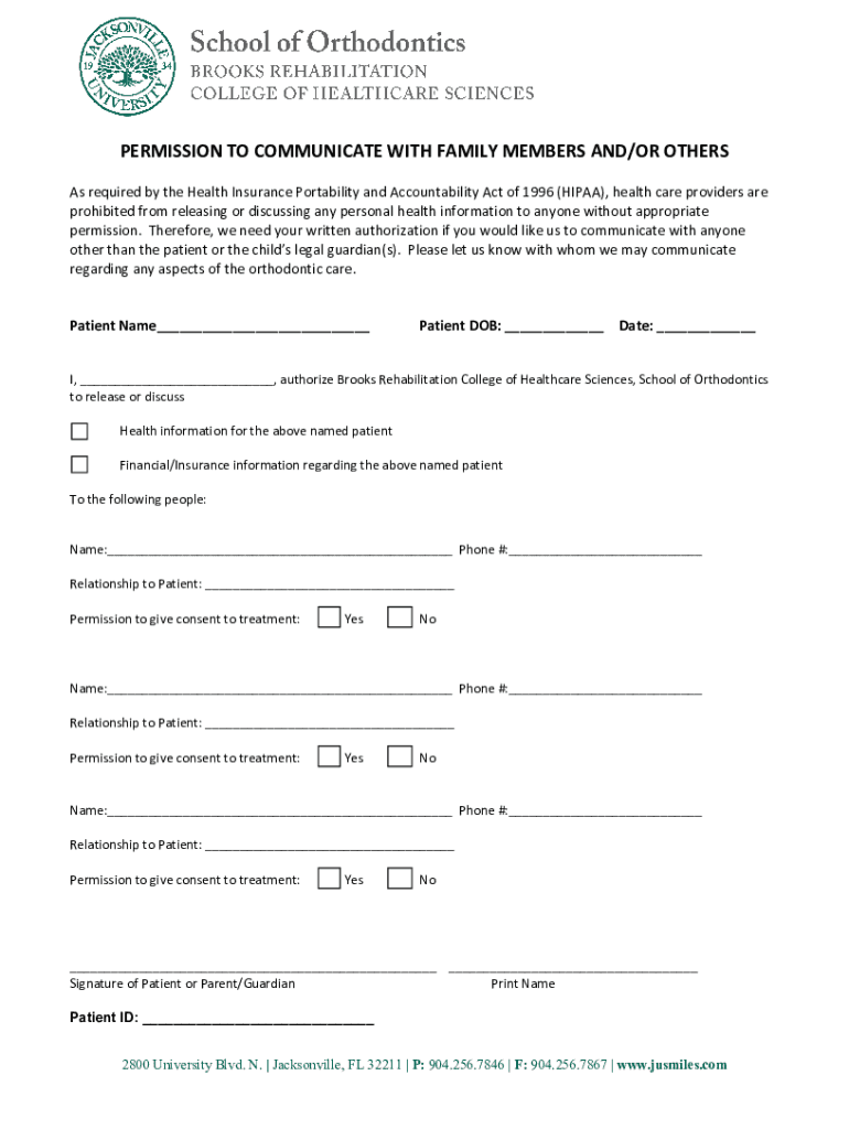 PERMISSION TO COMMUNICATE WITH FAMILY MEMBERS AND/OR OTHERS As required by the Health Insurance Portability and Accountability Act of 1996 (HIPAA), health care providers are prohibited from releasing