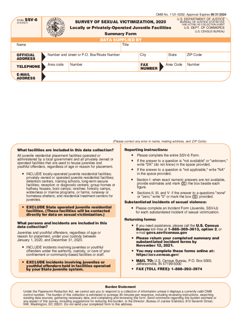 Get the free SURVEY OF SEXUAL VICTIMIZATION, 2020 Locally or Privately-Operated Juvenile Faciliti...