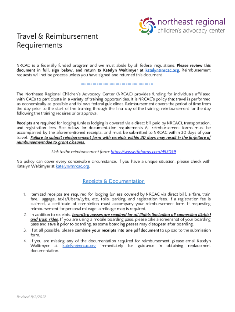 Get the free NRCAC is a federally funded program and we must abide by all federal regulations