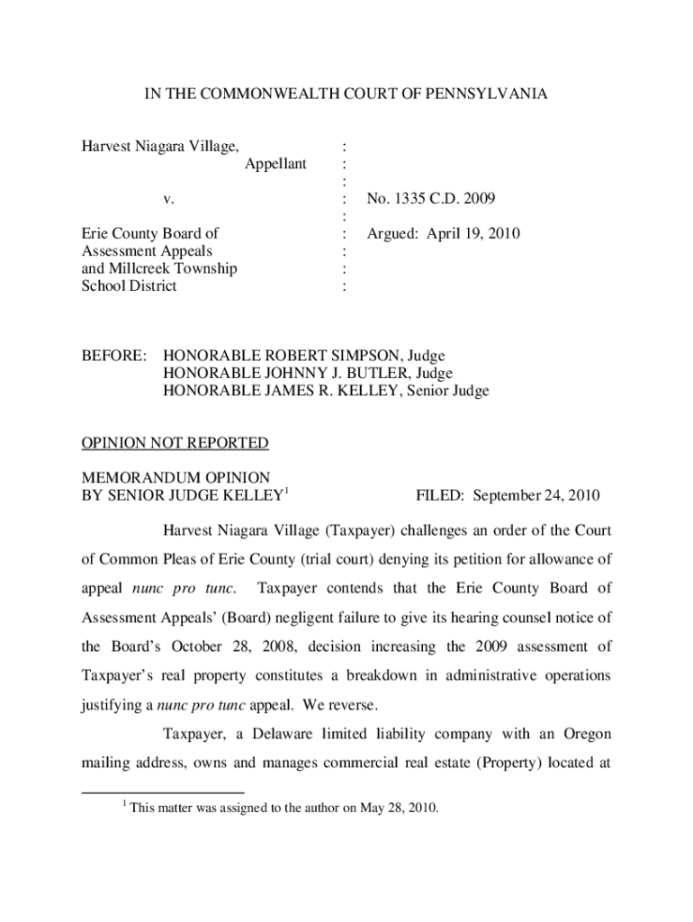 IN THE COMMONWEALTH COURT OF PENNSYLVANIA Harvest Niagara Village, Appellant v. Erie County Board of Assessment Appeals and Millcreek Township School DistrictBEFORE:: : : : : : : : :No. 1335 C.D.