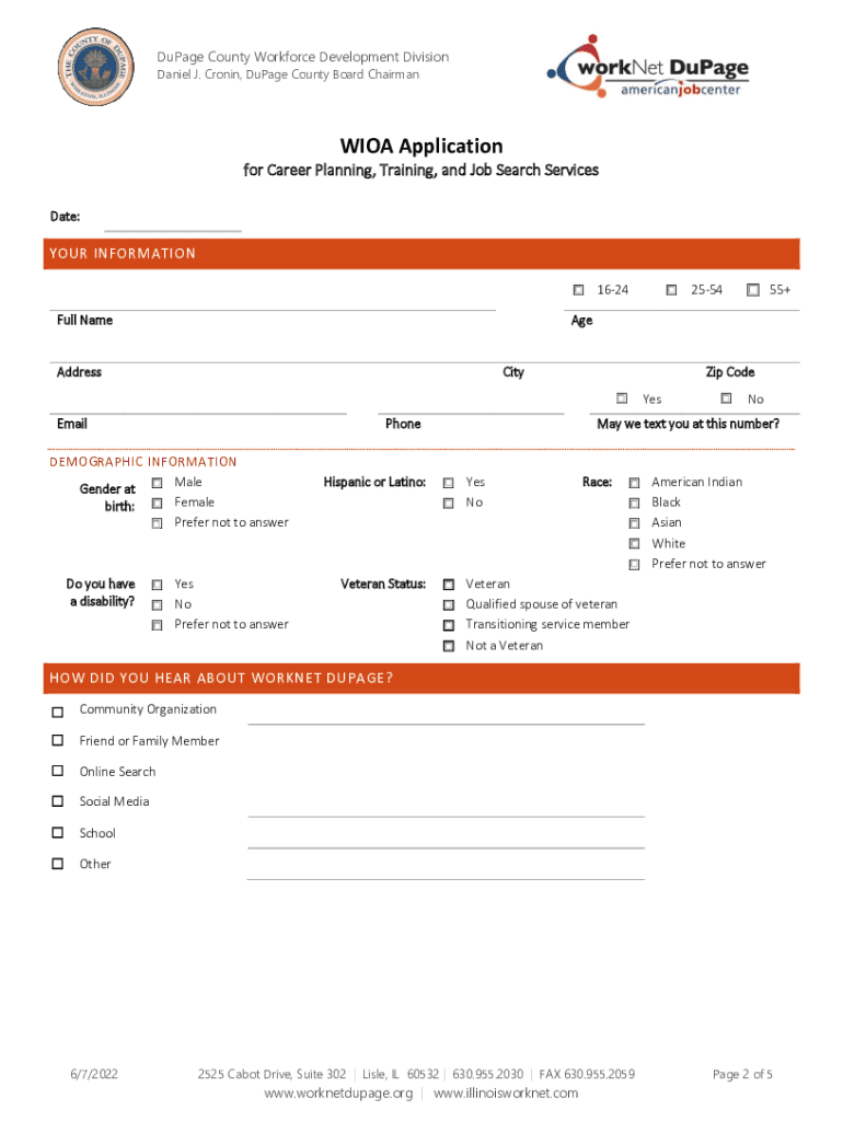 for Career Planning, Training, and Job Search ServicesPlease complete the attached form,