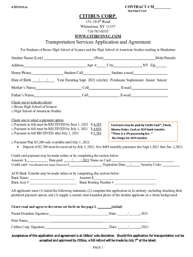 WWW.CITIBUSNYC. Transportation Services Application and Agreement
