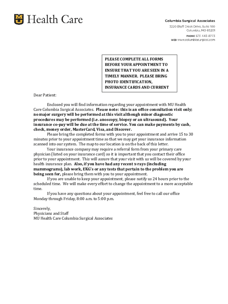 PLEASE COMPLETE ALL FORMS BEFORE YOUR APPOINTMENT TO ENSURE THAT YOU ARE SEEN IN A TIMELY MANNER. PLEASE BRING PHOTO IDENTIFICATION, INSURANCE CARDS AND CURRENT Dear Patient: Enclosed you will find