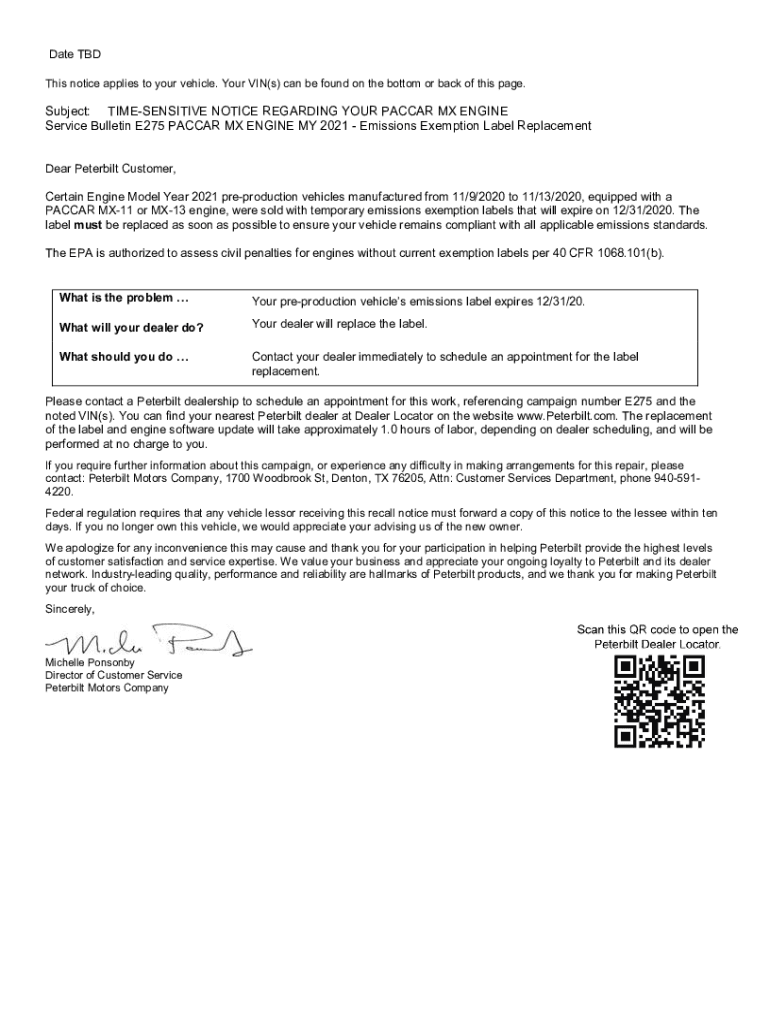 This notice applies to your vehicle. Your VIN(s) can be found on the bottom or back of this page. Subject: INSENSITIVE NOTICE REGARDING YOUR NASCAR MX ENGINE