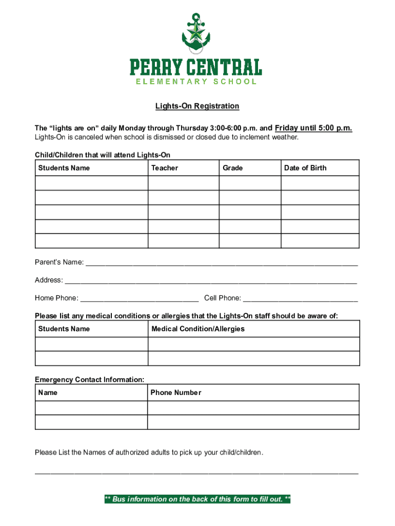Get the free Lights On Registration Form