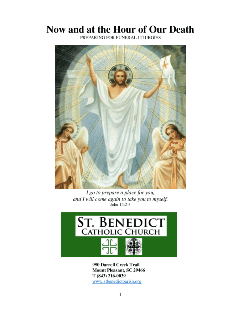 Now and at the Hour of Our Death PREPARING FOR FUNERAL LITURGIES go to prepare a place for you, and I will come again to take you to myself. John 14:23950 Darrell Creek Trail Mount Pleasant, SC 29466