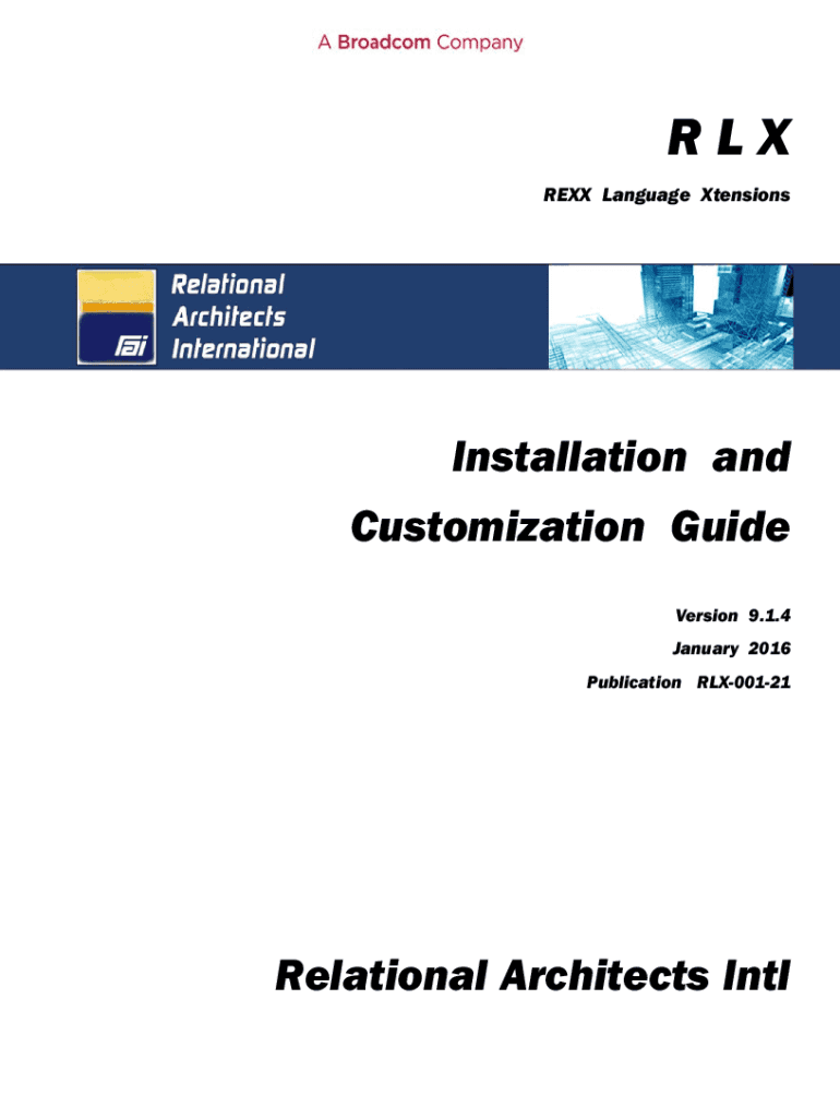 REX Language XtensionsInstallation and Customization Guide Version 9.1.4 January 2016 Publication RLX00121Relational Architects Intl___This Guide:(RAI Publication RLX00121)This document applies to
