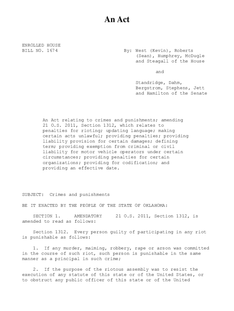 Get the free Bill tracking in Oklahoma - HB 1674 (2021-2022 legislative ...