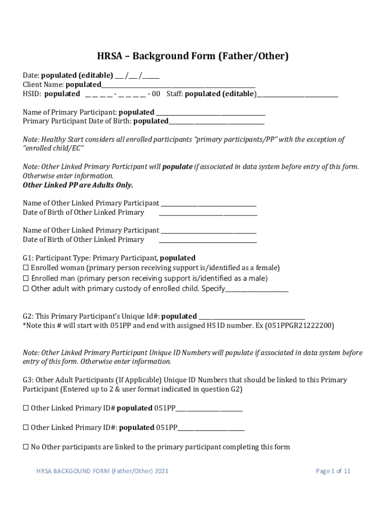 RSA Background Form (Father/Other)Date: populated (editable) ___ /___ /___Client Name: populated___HSID:populated__ __ __ __ __ __ __ __ 00Staff: populated (editable)___Name of Primary Participant: