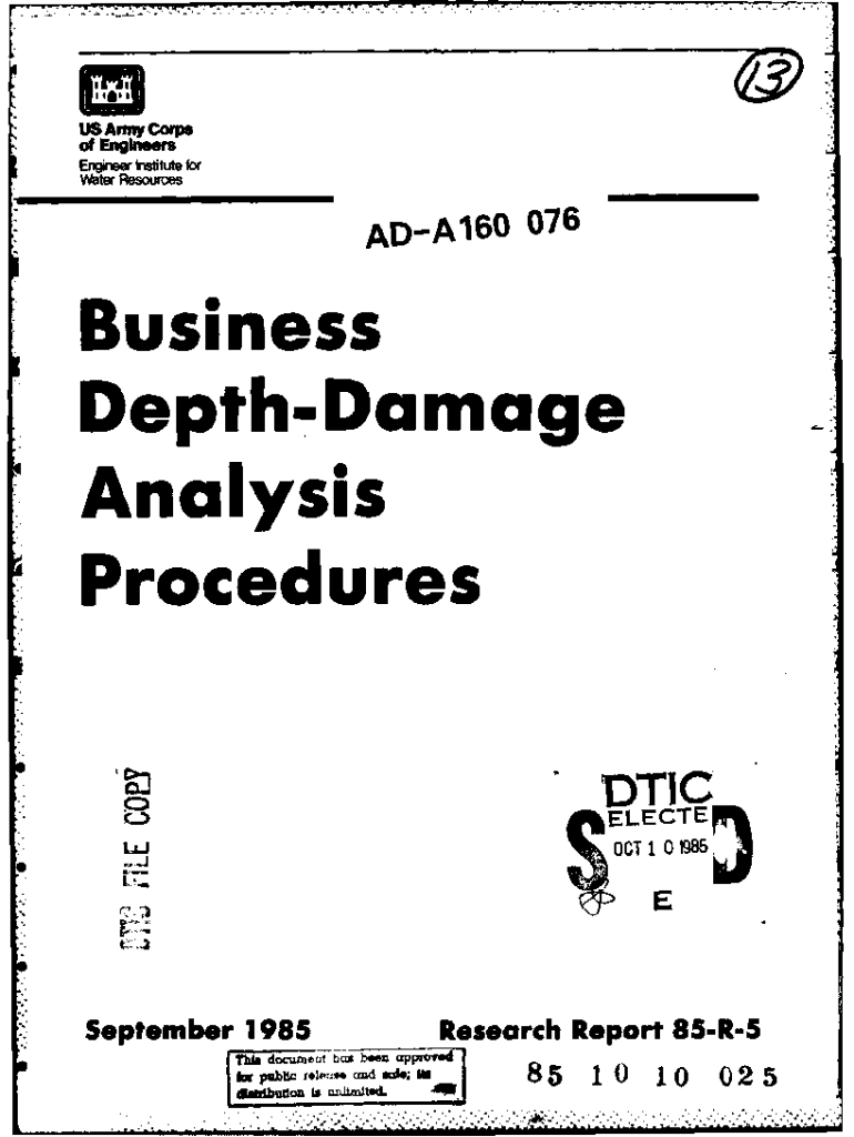 US Army Corps of EngineersErgneer quite for Water ResourcesADA1 60076Business DepthDamage * Analysis Procedures \” DTC ELECTED\'OC×Research Report 85R5September 1985ThI\” docent has been award