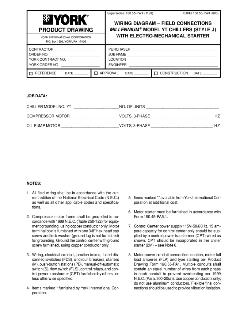 Supersedes: 160.55PW4 (1199)PRODUCT DRAWING YORK INTERNATIONAL CORPORATION P.O. Box 1592, YORK, PA 17405CONTRACTOR ___ ORDER NO. ___ YORK CONTRACT NO. ___ YORK ORDER NO. ___ REFERENCED ATE ___FORM