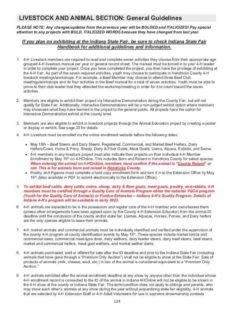 LIVESTOCK AND ANIMAL SECTION: General Guidelines PLEASE NOTE: Any changes/updates from the previous year will be BOLDED and ITALICIZED! Pay special attention to any projects with BOLD, ITALICIZED