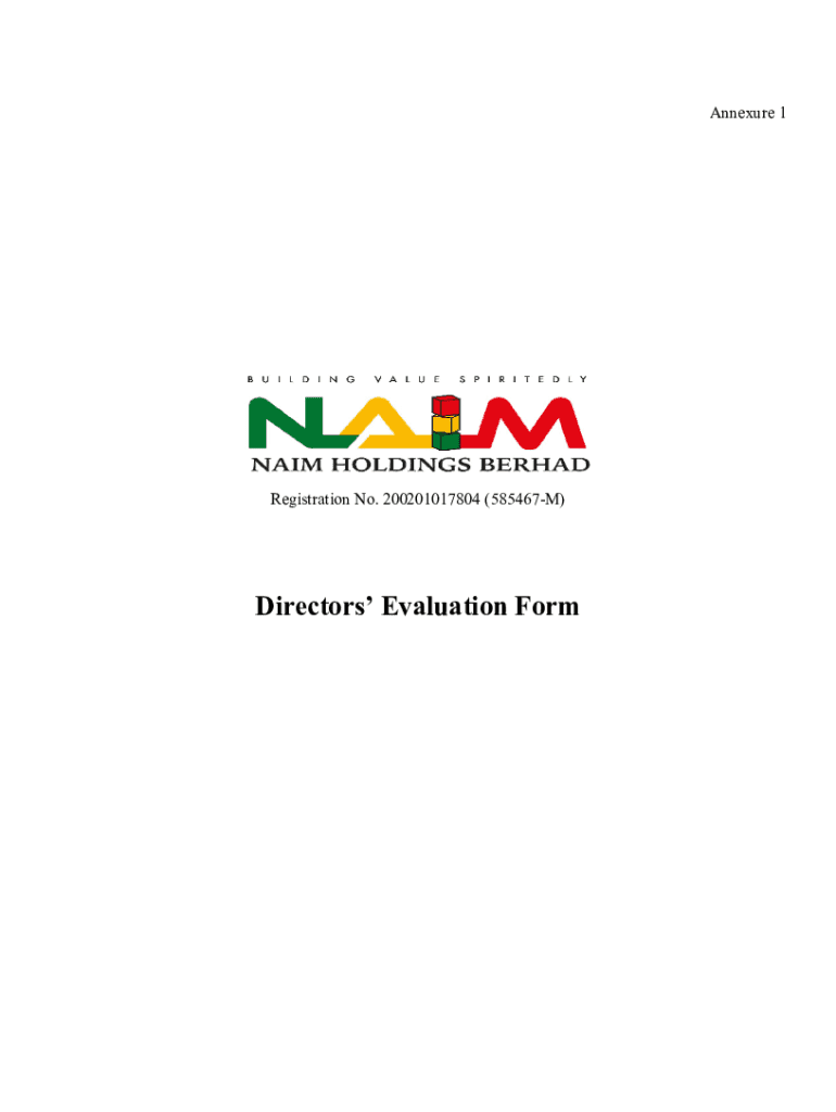 Appendix 1Registration No. 200201017804 (585467M)Directors Evaluation Forth Evaluation Form provides ratings from one (1) to four (4) yes and no, with the indicators illustrated below,