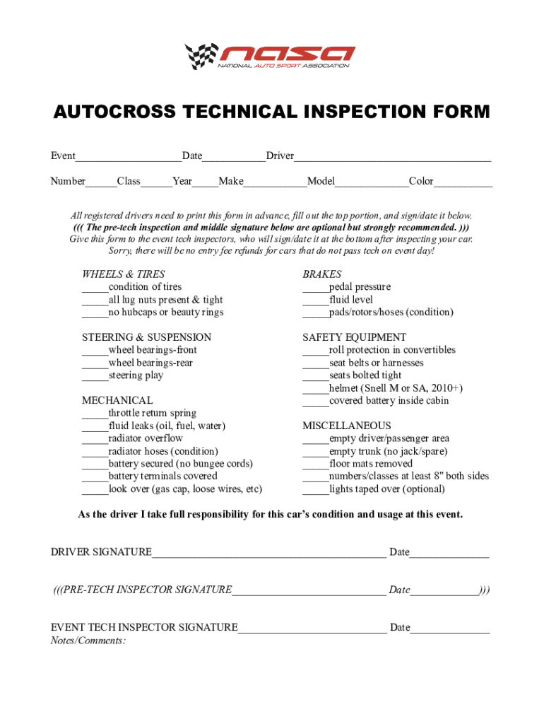 Get the free Autocross Tech inspection sheet