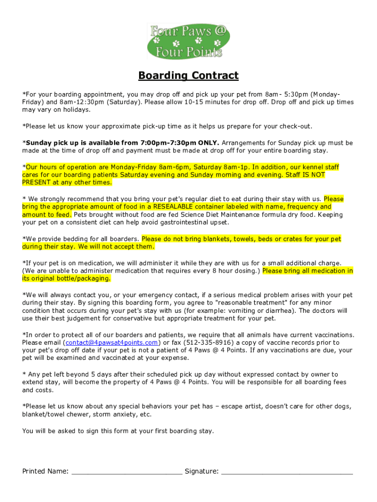 Edit your pet boarding agreement form online
