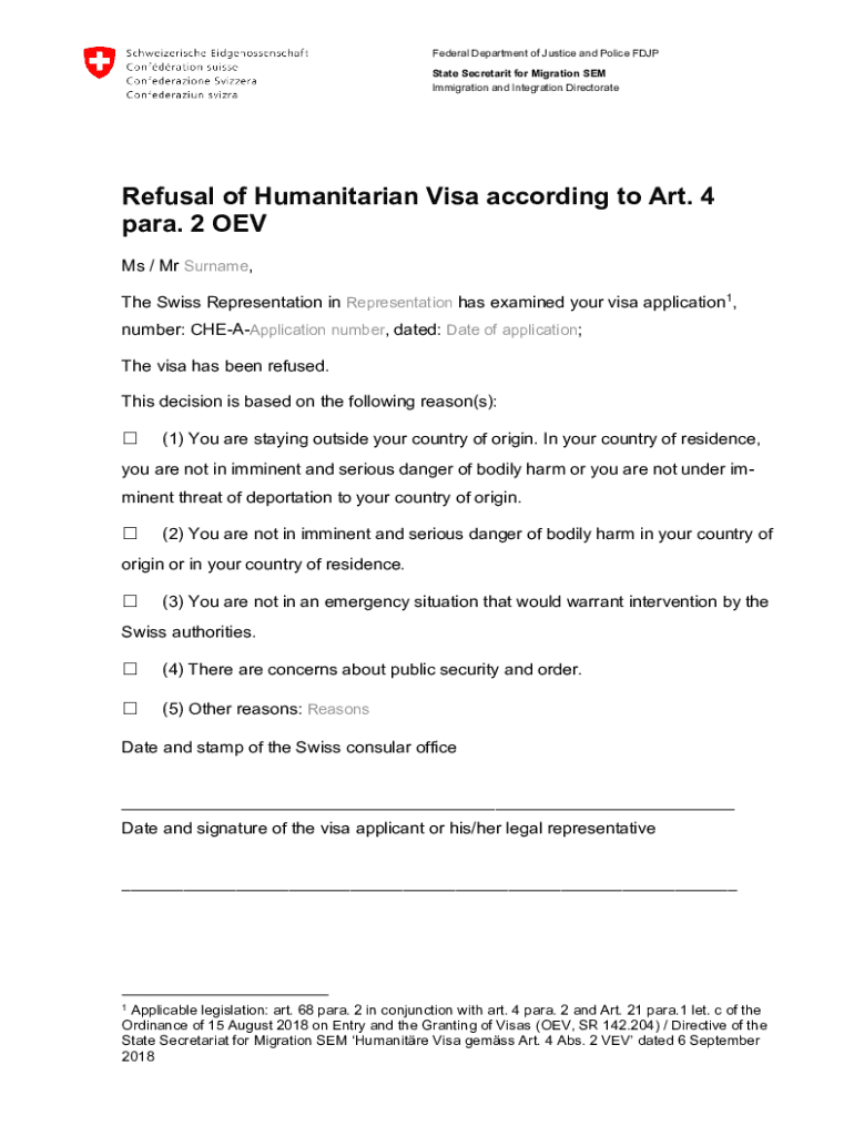 Immigration and Integration DirectorateRefusal of Humanitarian Visa according to Art. 4