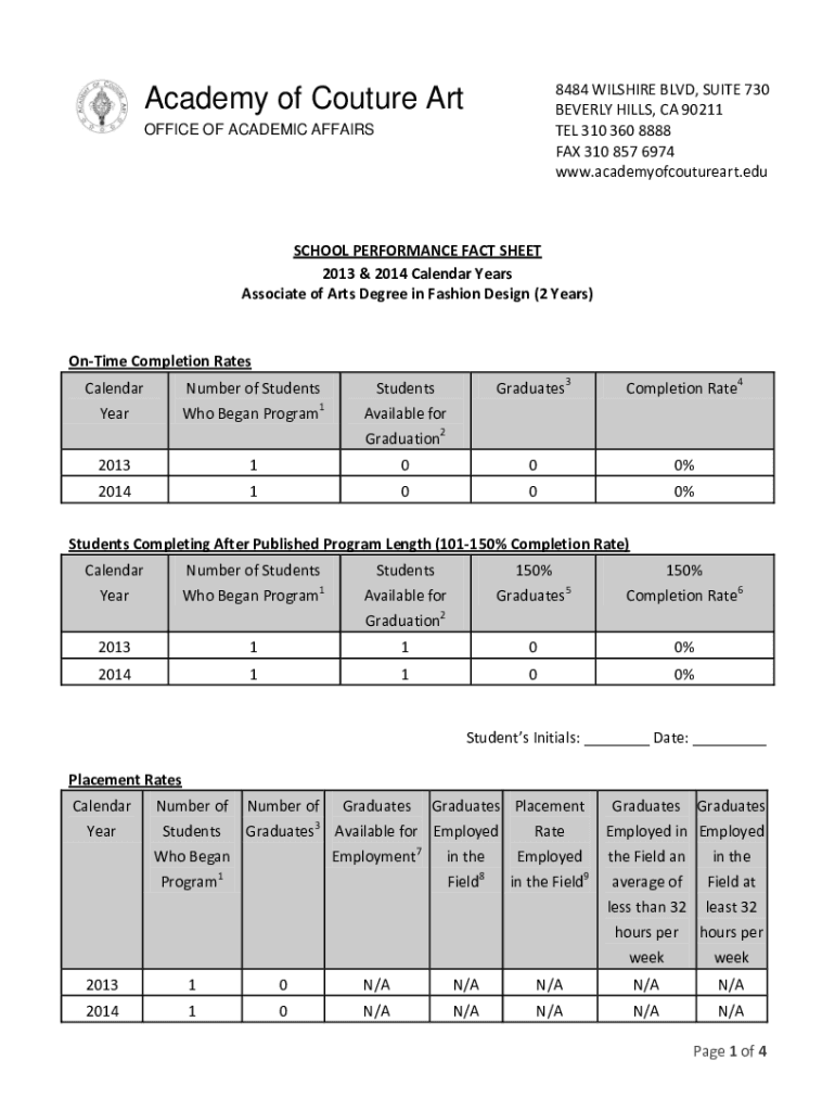 Get the free Academy of Couture Art School Performance Fact Sheets