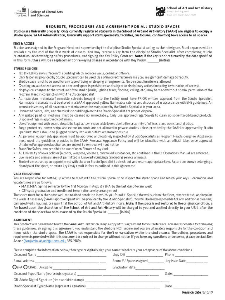 Get the free REQUESTS, PROCEDURES AND AGREEMENT FOR ALL ... - art uiowa