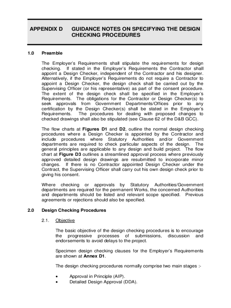 APPENDIX D1.0GUIDANCE NOTES ON SPECIFYING THE DESIGN CHECKING PROCEDURESPreamble The Employers Requirements shall stipulate the requirements for design checking. If stated in the Employers Requirements