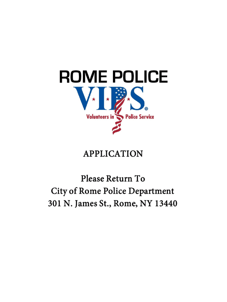 ROME POLICEAPPLICATION Please Return To City of Rome Police Department 301 N. James St., Rome, NY 13440DESCRIPTION AND ELIGIBILITY The Program consists of citizens 25 years of age and older who have