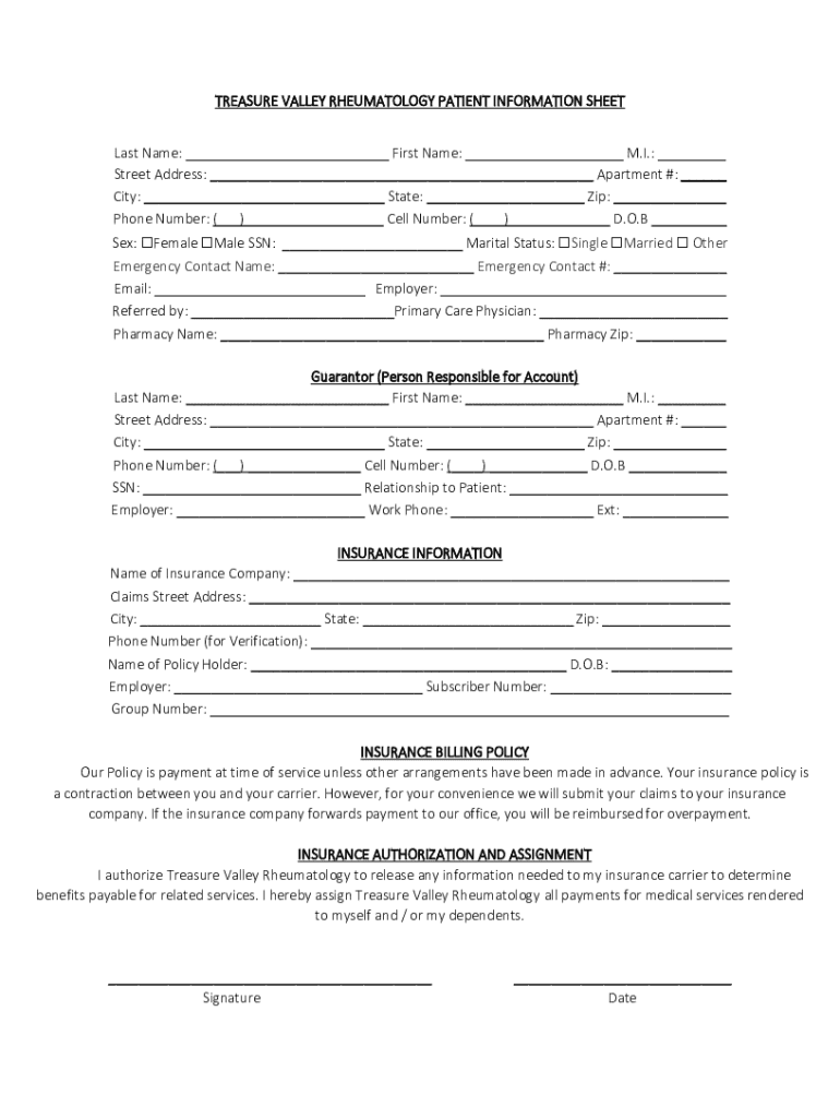 Get the free treasure valley rheumatology patient information sheet
