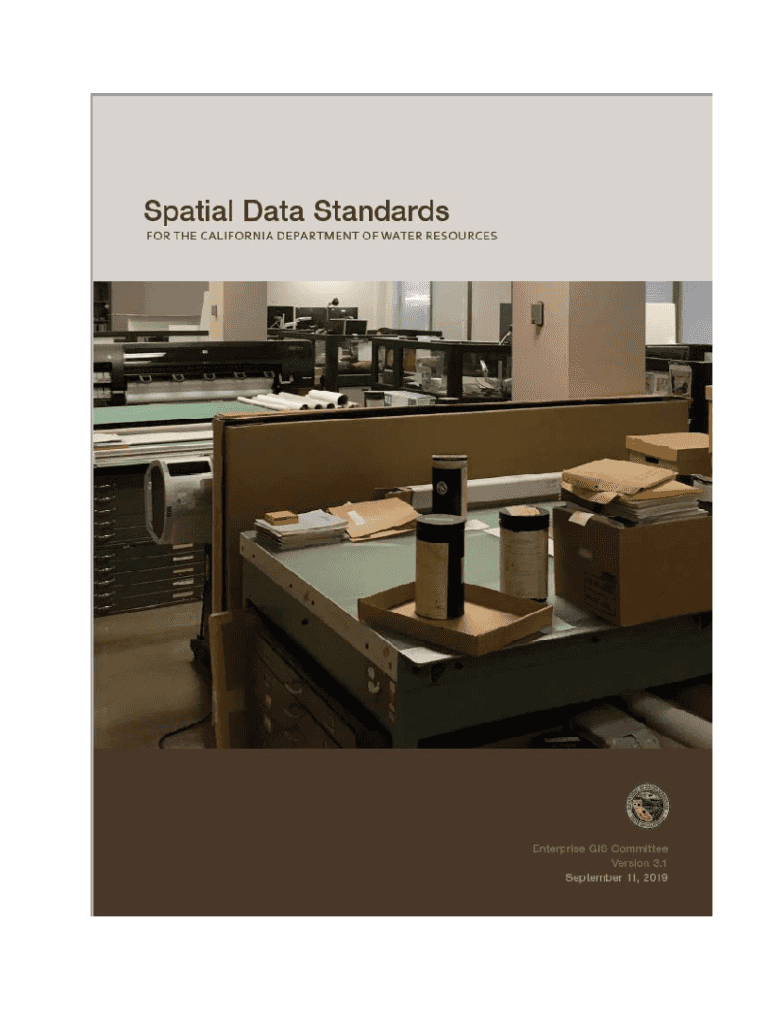 SPATIAL DATA STANDARDS FOR THE CALIFORNIA DEPARTMENT OF WATER RESOURCES Enterprise GIS Committee Version 3.1SEPTEMBER 11, 2019The California Department of Water Resources (DR) is committed to making