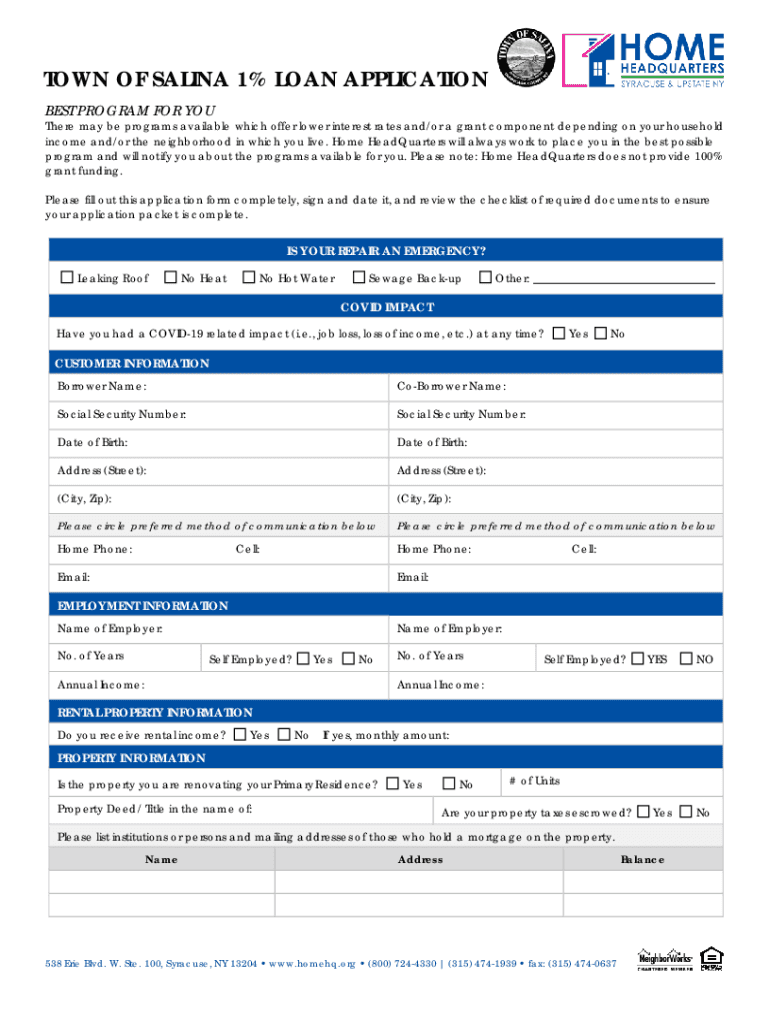 Get the free TOWN OF SALINA 1% LOAN APPLICATION