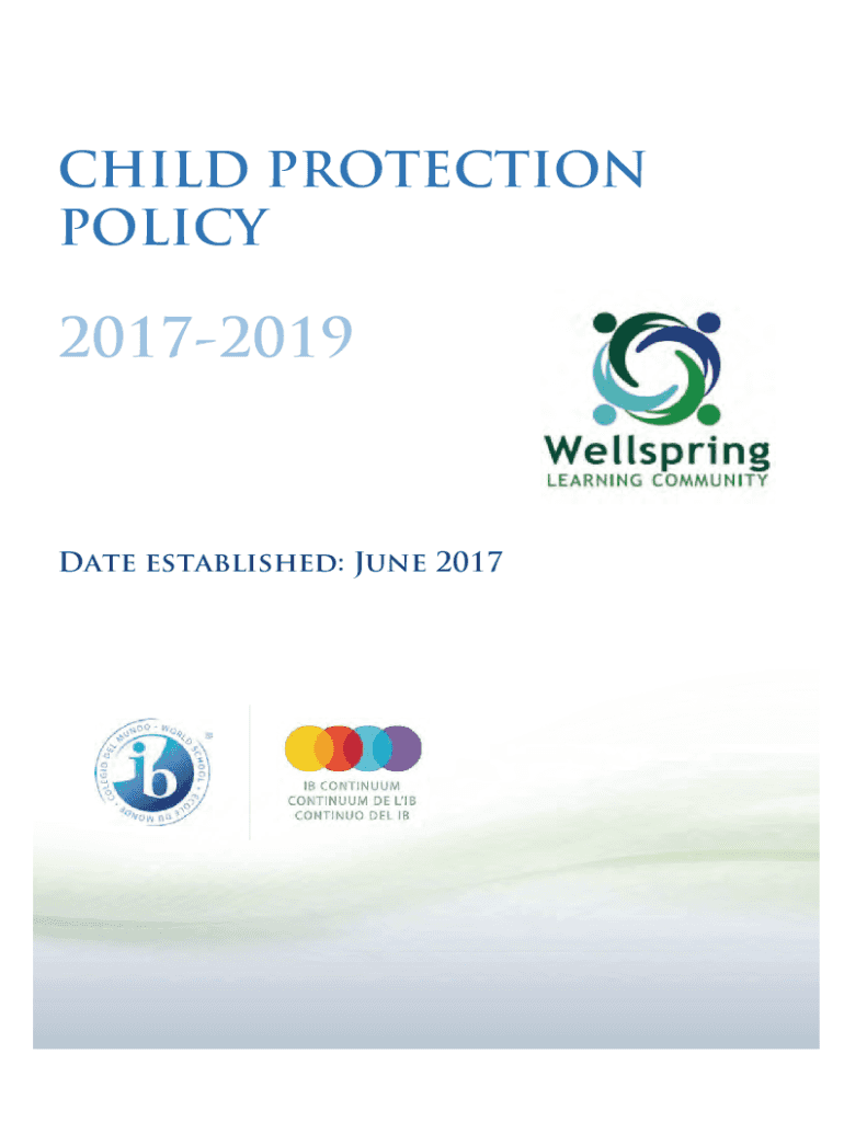 CHILD PROTECTION POLICY !20172019 ! Date established: June 2017! !!!!! Wellspring Child Protection PolicyThis policy was developed by ___ and adopted __/___/2017The designated CPO is ___ThedesignatedCPGmembersare:___(Principal),