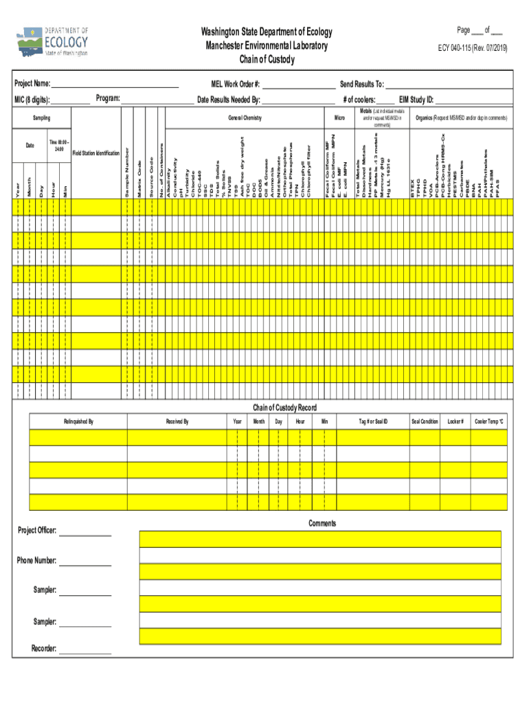 Obtain the laboratory analyses required form from the designated authority or organization.