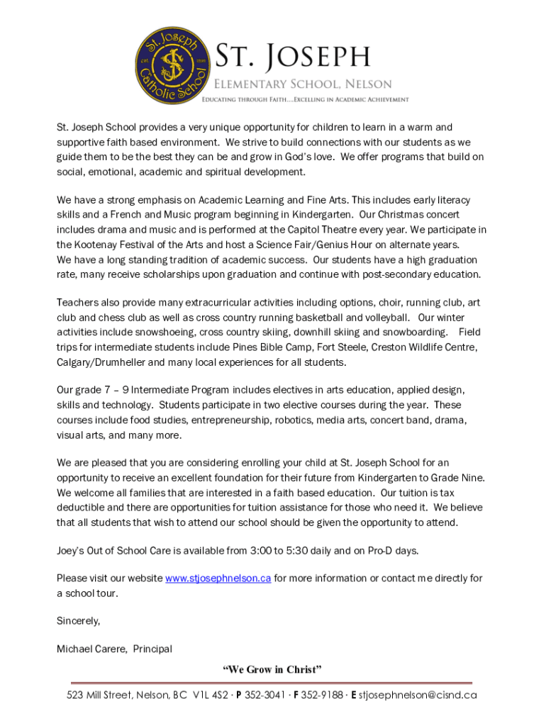 Get the free Joseph School provides a very unique opportunity for children to learn in a warm and