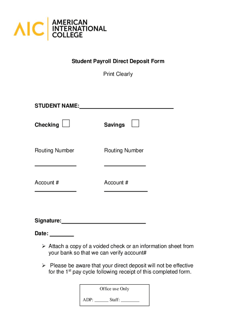 Student Payroll Direct Deposit Form