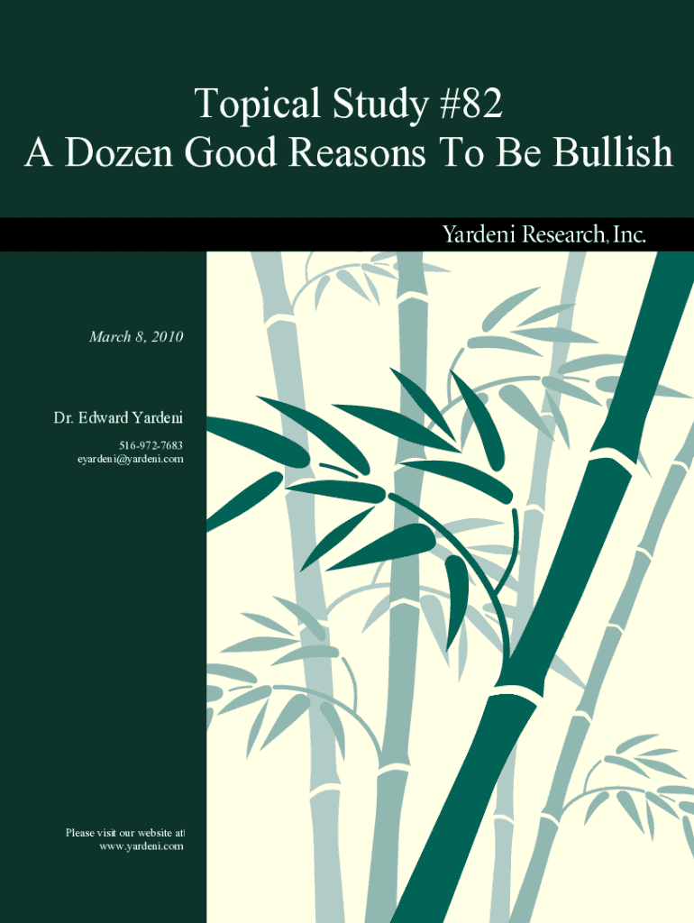 Topical Study #82 A Dozen Good Reasons To Be Bullish Garden Research, Inc. March 8, 2010Dr. Edward Garden 5169727683 eyardeni@yardeni.comPlease visit our website at www.yardeni.comI. Happy Anniversary!