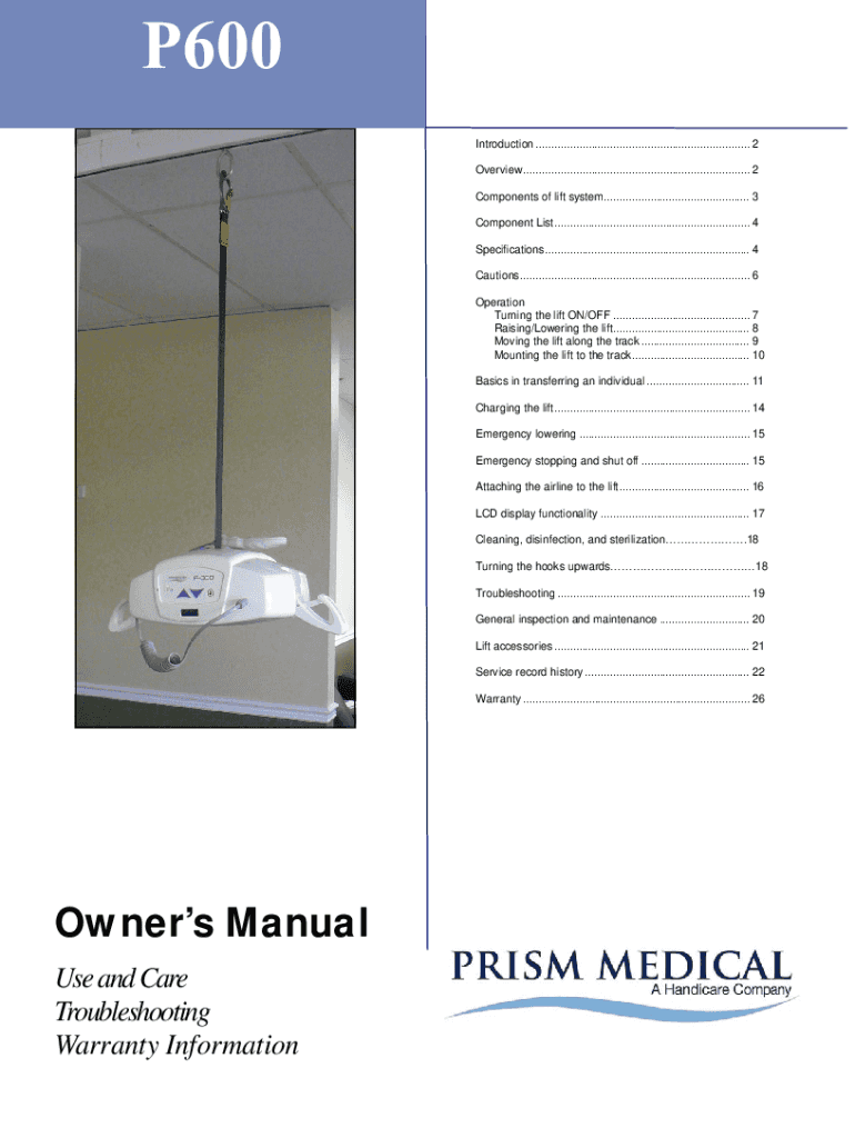 Get the free Owners ManualP-600 Portable Ceiling LiftHandicare Ceiling Lifts for SaleMy Mobility ...