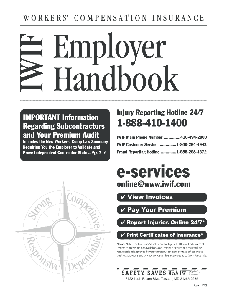 IIF W O R K E R S C O M P E N S A T I O N I N S U R A N C E Employer Handbook IMPORTANT Information Regarding Subcontractors and Your Premium Audit Includes the New Workers Comp Law Summary Requiring