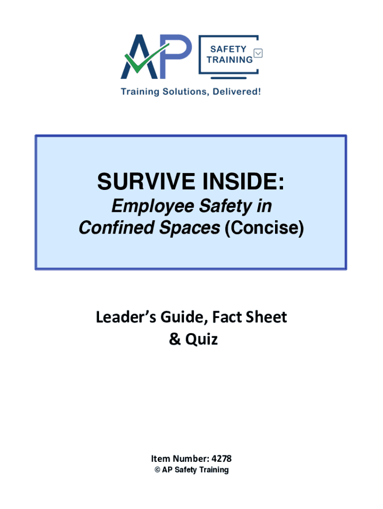 SURVIVE INSIDE: Employee Safety in Confined Spaces (Concise)Leaders Guide, Fact Sheet & Quite Number: 4278 AP Safety Trainings espouse Leaders Guide is provided to assist in conducting a successful