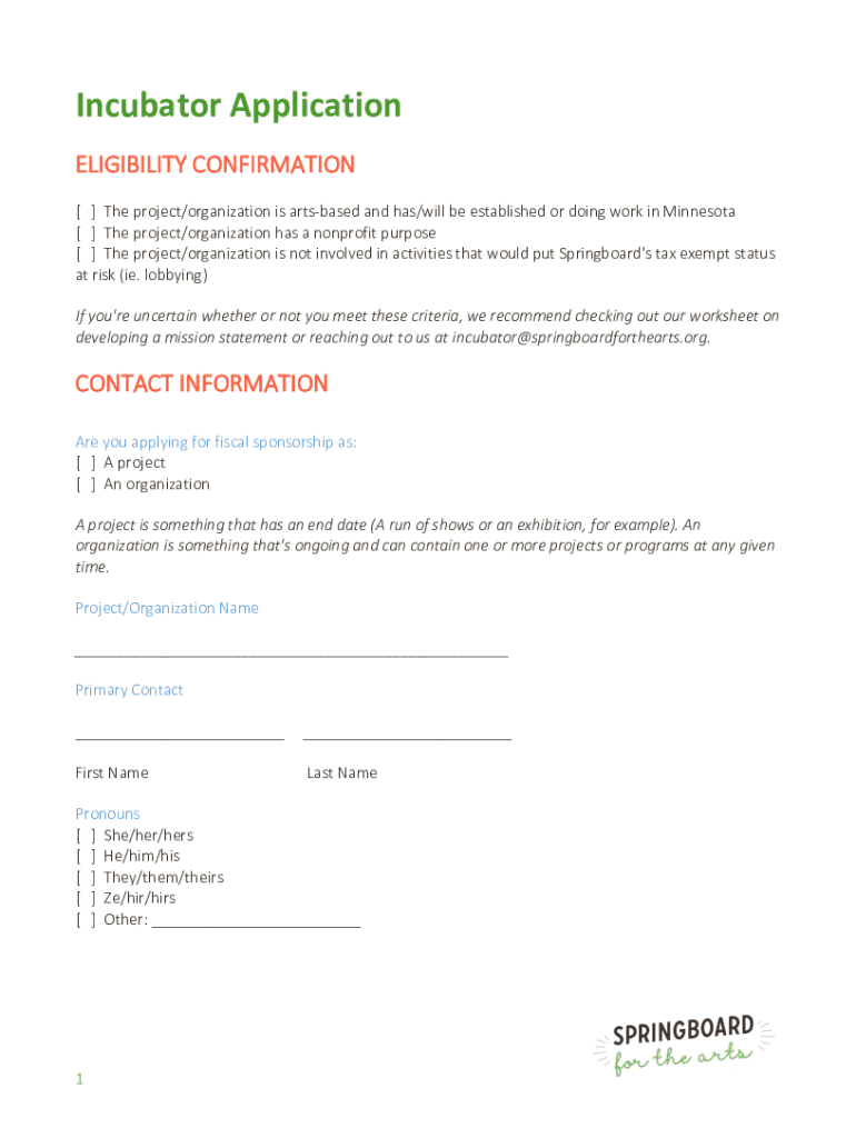 [ ] The project/organization is arts based and has/will be established or doing work in Minnesota