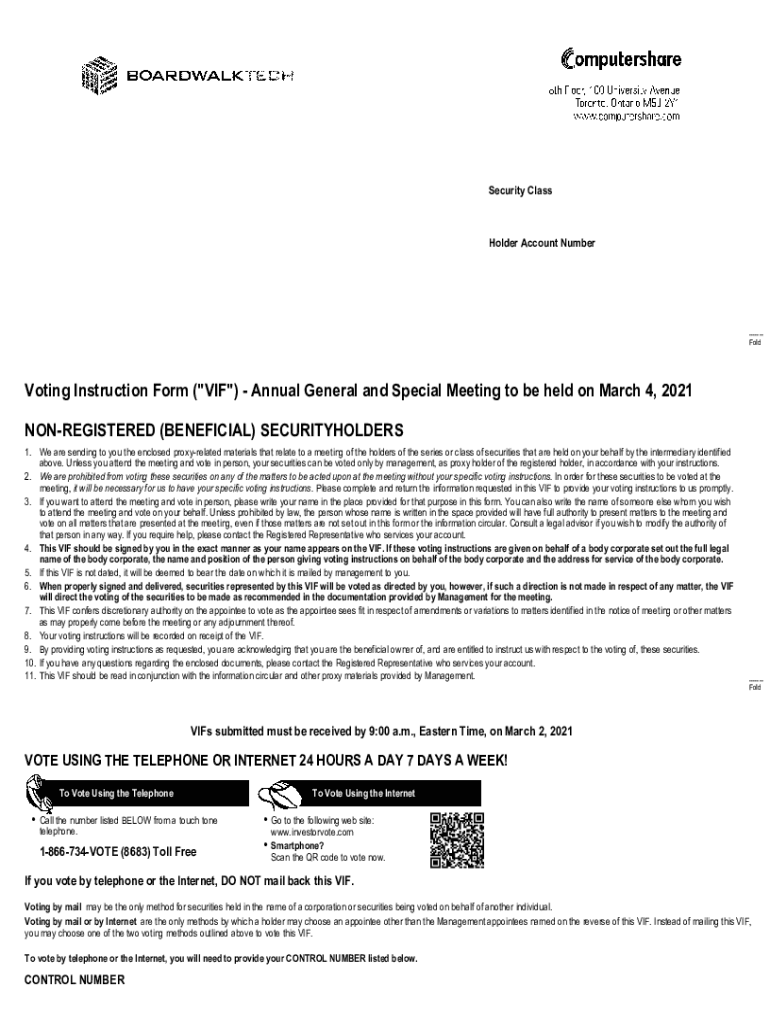 Security Class Holder Account NumberFoldVoting Instruction Form (\” IF\”) Annual General and Special Meeting to be held on March 4, 2021, UNREGISTERED (BENEFICIAL) SECURITYHOLDERS 1. We are sending
