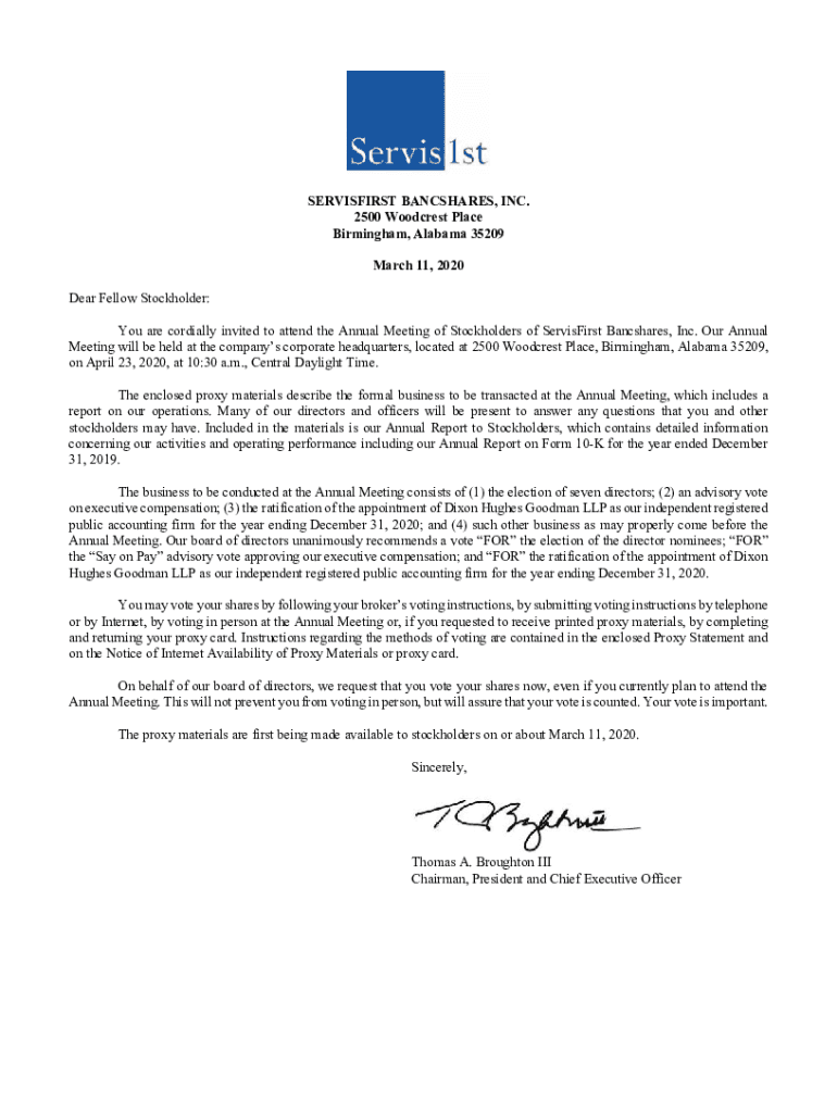You are cordially invited to attend the Annual Meeting of Stockholders of ServisFirst