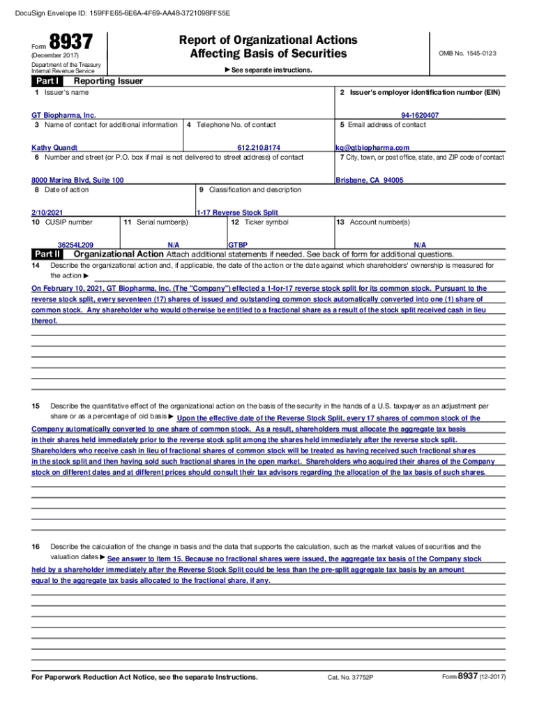 DocuSign Envelope ID: 159FFE656E6A4F69AA483721098FF55E8937Report of Organizational Actions Affecting Basis of SecuritiesForm (December 2017) Department of the Treasury Internal Revenue Serviceman