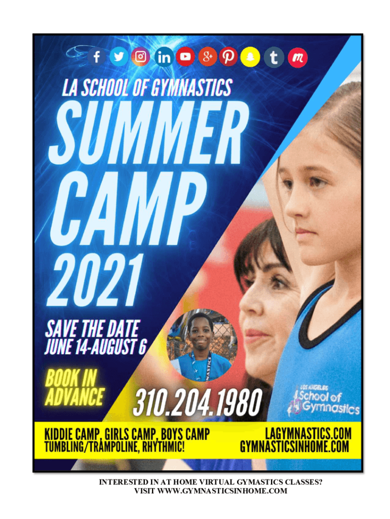 INTERESTED IN AT HOME VIRTUAL GYMNASTICS CLASSES? VISIT WWW.GYMNASTICSINHOME.COMBOS ANGELES SCHOOL OF GYMNASTICS 2021 Summer Gymnastics Day Camp Dear Gymnastics Camp parent, Welcome and thank you