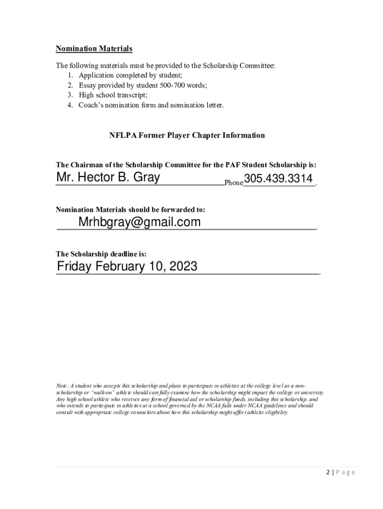 2023 PAF Chapter Student Scholarship Application The PAF Chapter Student Scholarship is designed for high school athletes with intentions to attend a 2year or 4year college/university. The scholarship