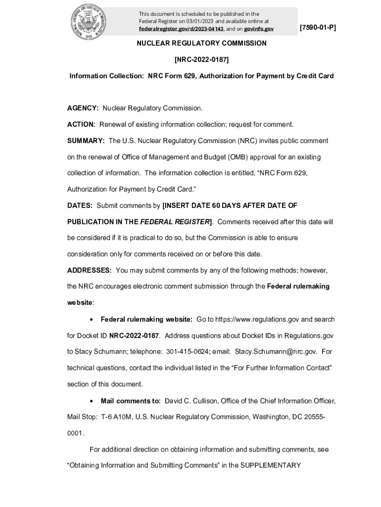 This document is scheduled to be published in the Federal Register on 03/01/2023 and available online at federalregister.gov/d/202304143, and on gov info.gov[759001P]NUCLEAR REGULATORY COMMISSION
