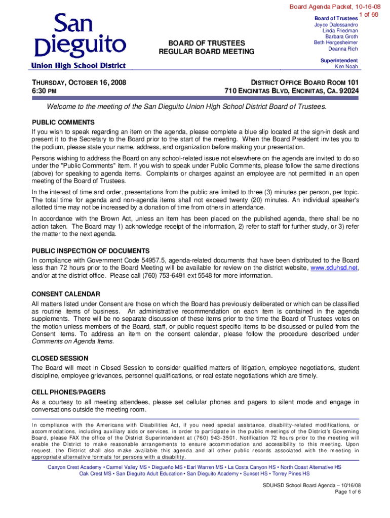 Get the free Board Agenda Packet, 10-16-08 1 of 68