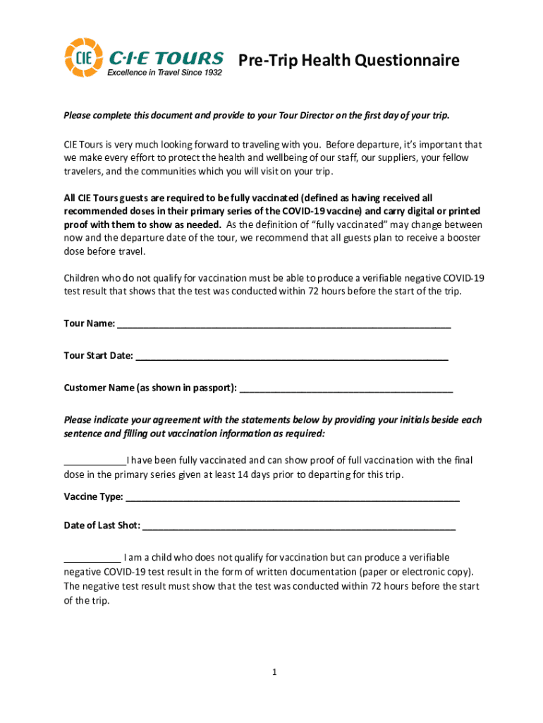 Fill out your pre-trip health questionnaire online with pdfFiller!